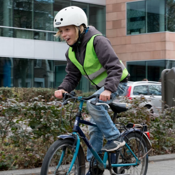 Stappen en fietsen zijn coronaveilige manieren om naar school te gaan, maar zeker in de donkere wintermaanden verdient de verkeersveiligheid van stappers en trappers extra aandacht. Kinderen die te voet of per fiets op weg zijn, lopen in deze periode immers het risico dat autobestuurders hen in het (schemer)duister niet of te laat opmerken. Een fluohesje zorgt voor betere zichtbaarheid op grote afstand, zodat automobilisten hun gedrag kunnen aanpassen en ongevallen met kwetsbare weggebruikers kunnen vermijden. Een fietshelm kan uiteraard geen ongevallen voorkomen, maar vermindert het risico op ernstige hoofdletsels bij een ongeval of valpartij met 60%. Het risico op dodelijk hoofdletsel daalt zelfs met 71% (1). Nederlands onderzoek toont aan dat hoofd- of hersenletsels bij fietsongevallen naar verhouding vaker voorkomen bij kinderen en jongeren (2). Zeker voor jonge fietsers en fietspassagiers is het dragen van een fietshelm dus sterk aan te raden.