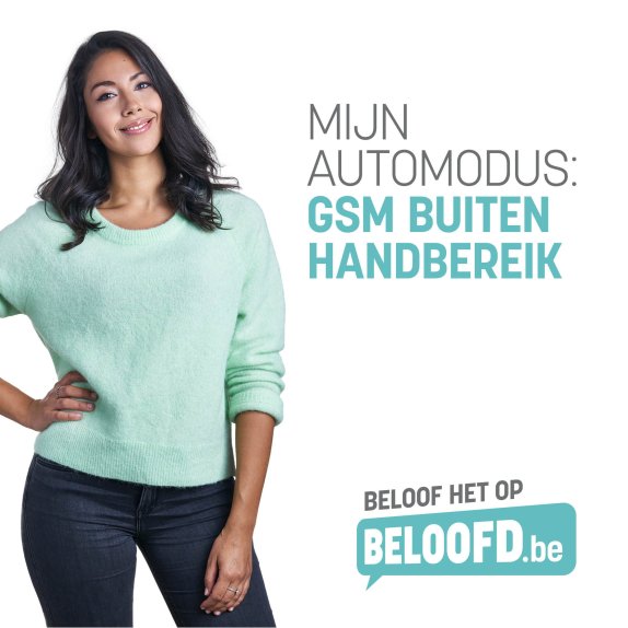 De affiches en radiospots worden ondersteund door advertenties op sociale media en via www.beloofd.be. Daar krijg je tips om de automodus te kiezen die het beste bij jou past, en kun je vervolgens de belofte maken om je smartphonegebruik achter het stuur te beperken. Alle informatie over afleiding aan het stuur is terug te vinden op www.veiligverkeer.be.