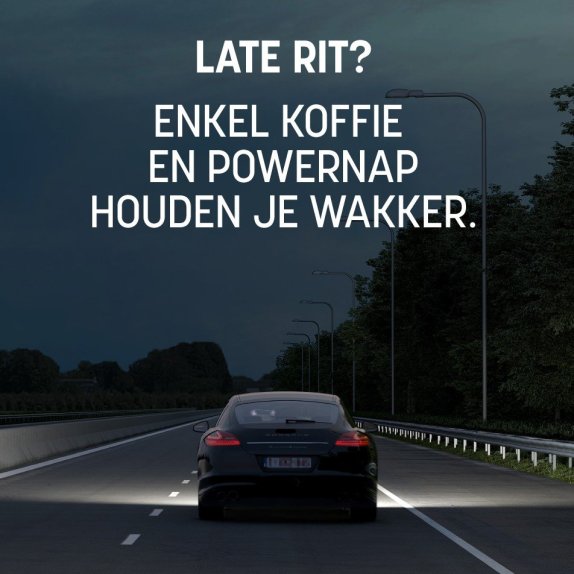 Vooraleer je aan een late rit begint, is het dus een goed idee om je voorzorgen te nemen en een kwartiertje te dutten, in combinatie met een koffie om je op te kikkeren. Alle andere oplossingen – tijdens het rijden een raampje openen, de muziek luider zetten, even stoppen om de benen te strekken – hebben geen effect én vergroten het risico dat de slaap achteraf dubbel zo hard toeslaat.