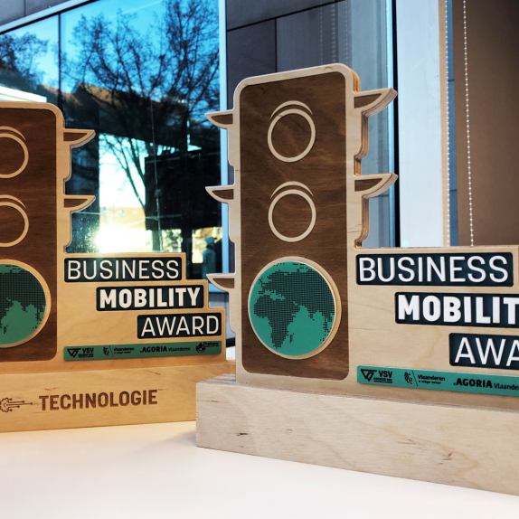 - De award voor slimme innovatieve mobiliteitstechnologie ging naar Olympus Mobility NV, een bedrijf dat een “Mobility as a Service”-oplossing aanbiedt voor ondernemingen. Olympus Mobility maakt het zowel voor werkgevers als werknemers eenvoudig om voor de meest duurzame verplaatsingen te kiezen. De werknemer krijgt één digitale toegang tot allerlei mobiliteitsdiensten via de Olympus-app: openbaar vervoer, deelwagens, deelfietsen, deelsteps, taxi's, Uber, Waterbus, internationale treintickets enz. De all-in-one mobiliteitsapp telt meer dan 200.000 gebruikers en dekt alle mobiliteitsbehoeften van de gebruiker. De administratie voor de werkgever blijft tot een minimum beperkt. De jury loofde dit project omdat het alomvattend is, data-gedreven en op zowel kleine als grote schaal toepasbaar. Het gaat om een laagdrempelige, gebruiksvriendelijke tool die werknemers aanzet om al hun verplaatsingen te verduurzamen.