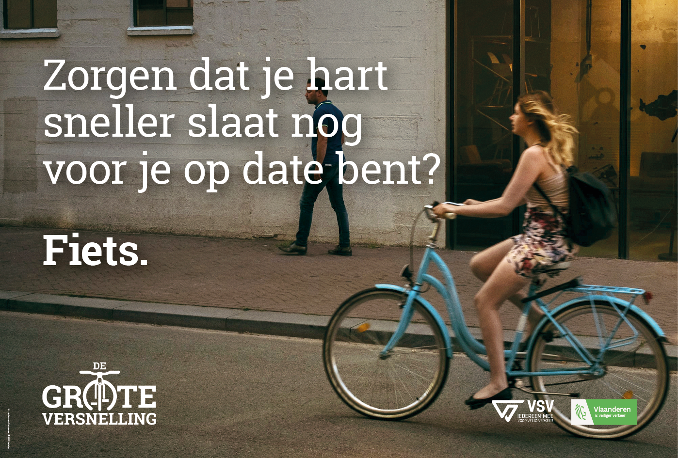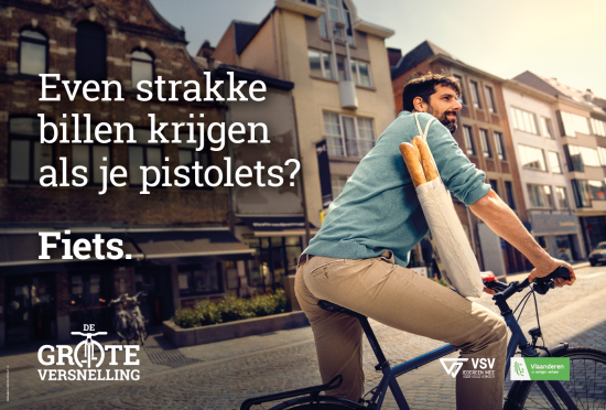 Via een positieve en soms best ludieke affichecampagne wil Vlaams minister van Mobiliteit en Openbare Werken Lydia Peeters op een positieve manier de vele voordelen die fietsen biedt in de kijker zetten. “Het is belangrijk dat ook voor functionele verplaatsingen steeds meer mensen voor de fiets kiezen”, aldus minister Peeters. De vier verschillende affiches zijn in de maand mei terug te vinden langs de hoofdwegen alsook enkele varianten op plakborden in steden en gemeenten. Bij een verschillende bakkers in meer dan 20 steden zullen ook broodzakken te vinden zijn met de tekst ‘even strakke billen krijgen als je pistolets? Fiets.’